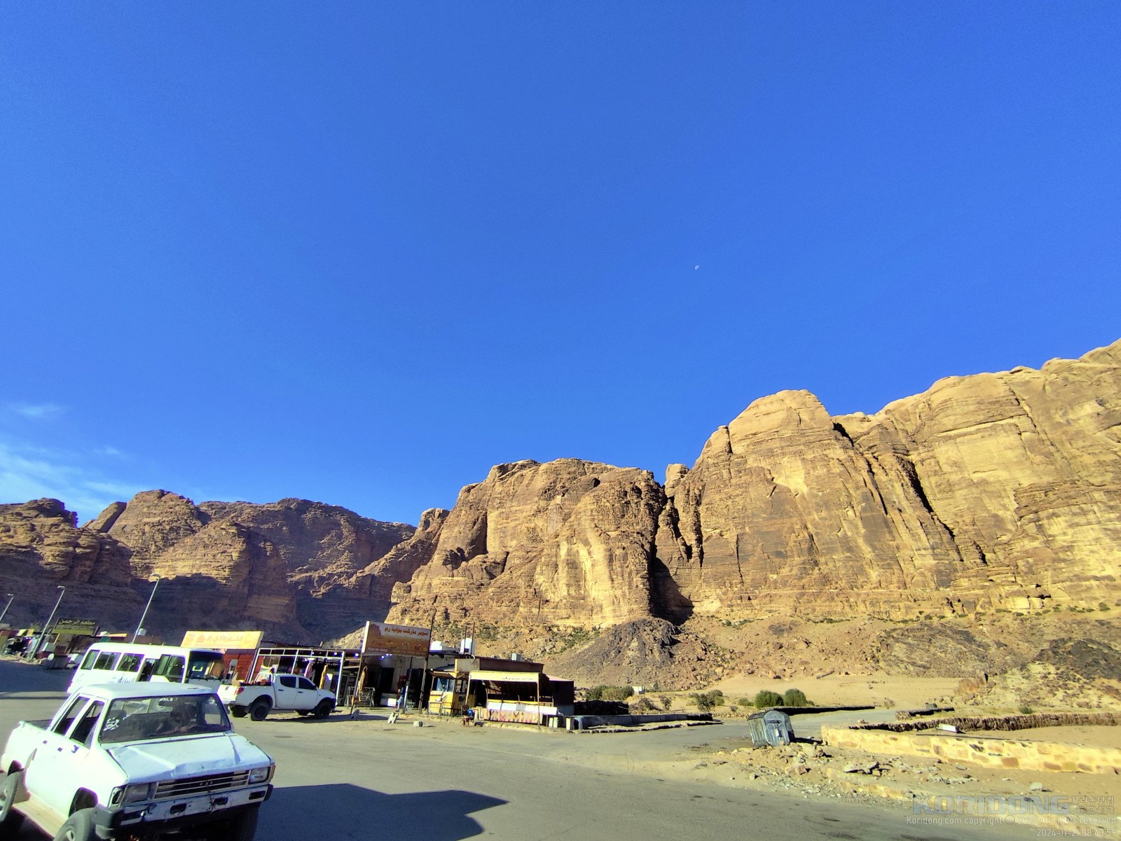 와디럼 내에 있는 캠프에서 1박 후 페트라(Petra, البترا)로 이동할려면 버스를 타야 했습니다. JETT 버스 홈페이지에서 확인한 바로는 오전 9시에 버스가 있었습니다. 그래서 묶었던 캠프에 추가요금을 지불하고 버스 정류장까지의 교통편을 요청했습니다. Wadi Rum Visitor Center에 내려주더군요. 안내 데스크에 문의해 보니 JETT 버스는 운행을 안하고, 미니 버스가 있다고 했습니다. 미니 버스는 Visitor Center를 지나 Wadi Rum Village에서 승객을 더 태우고 다시 온다고 하더군요. 그러면서 돌아올 때 만석일 수 있으니, 여기서 타는게 나을 거라는 조언까지 해 주었습니다. 그래서 일단 미니버스를 타고 Wadi Rum Village로 이동했습니다. 그 곳에서 정차하면서 한동안 승객들을 모으더군요. 한 30분정도 기다려 버스가 거의 다 차서 페트라로 이동했습니다. 숙소들이 몰려 있는 와디 무사(Wadi Musa, وادي موسى)에 있는 미니 버스 정류장에서 멈추더군요. 3시간정도 걸렸습니다.